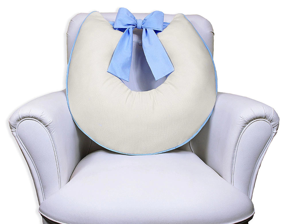 ALMOFADA DE AMAMENTAÇÃO LAÇO - PALHA COM AZUL