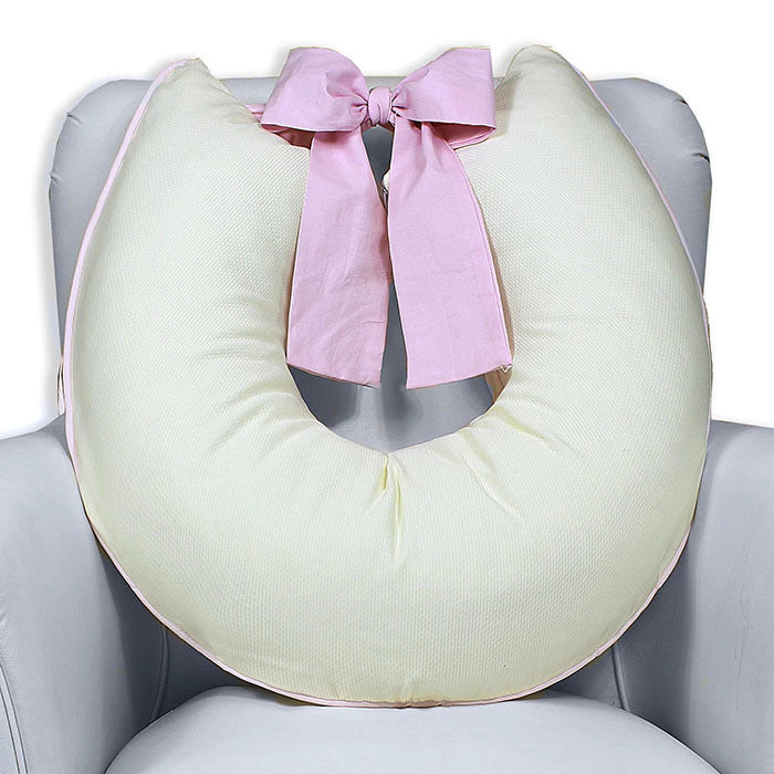 ALMOFADA DE AMAMENTAÇÃO LAÇO - PALHA COM ROSA