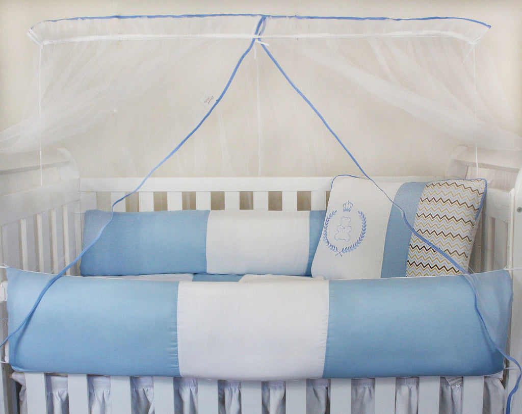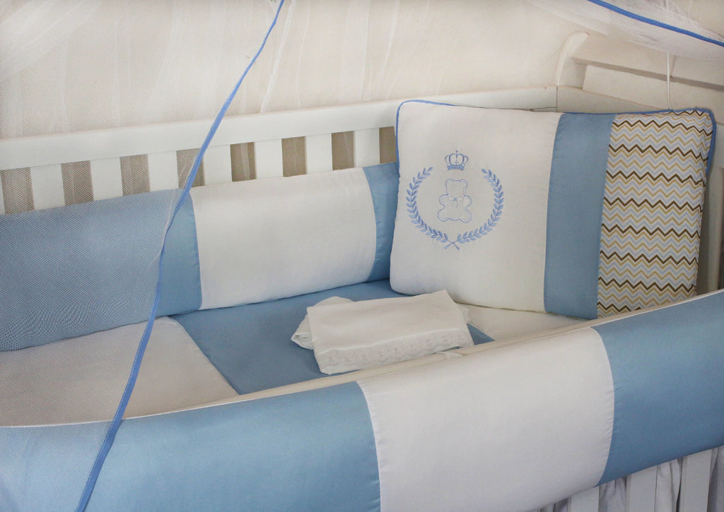 KIT KIDS COM MOSQUITEIRO COMUM 07 PEÇAS - URSINHO CHEVRON AZUL