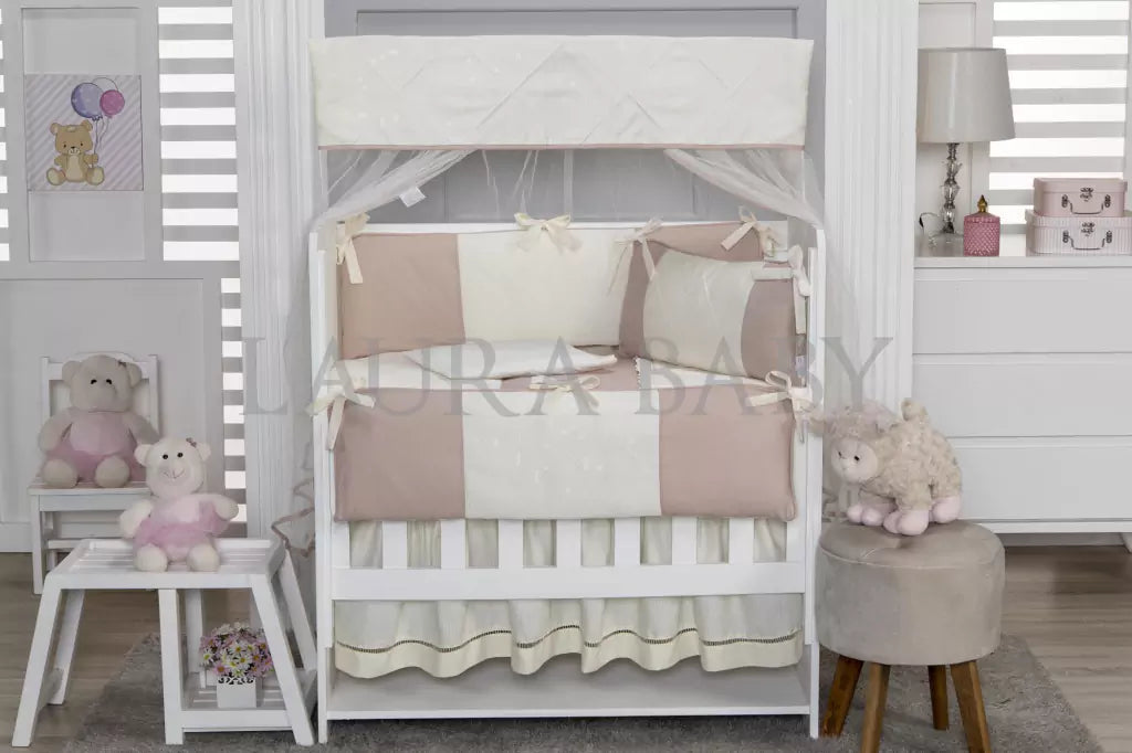 Kit Mini Berço 08 Peças - Nude Com Palha